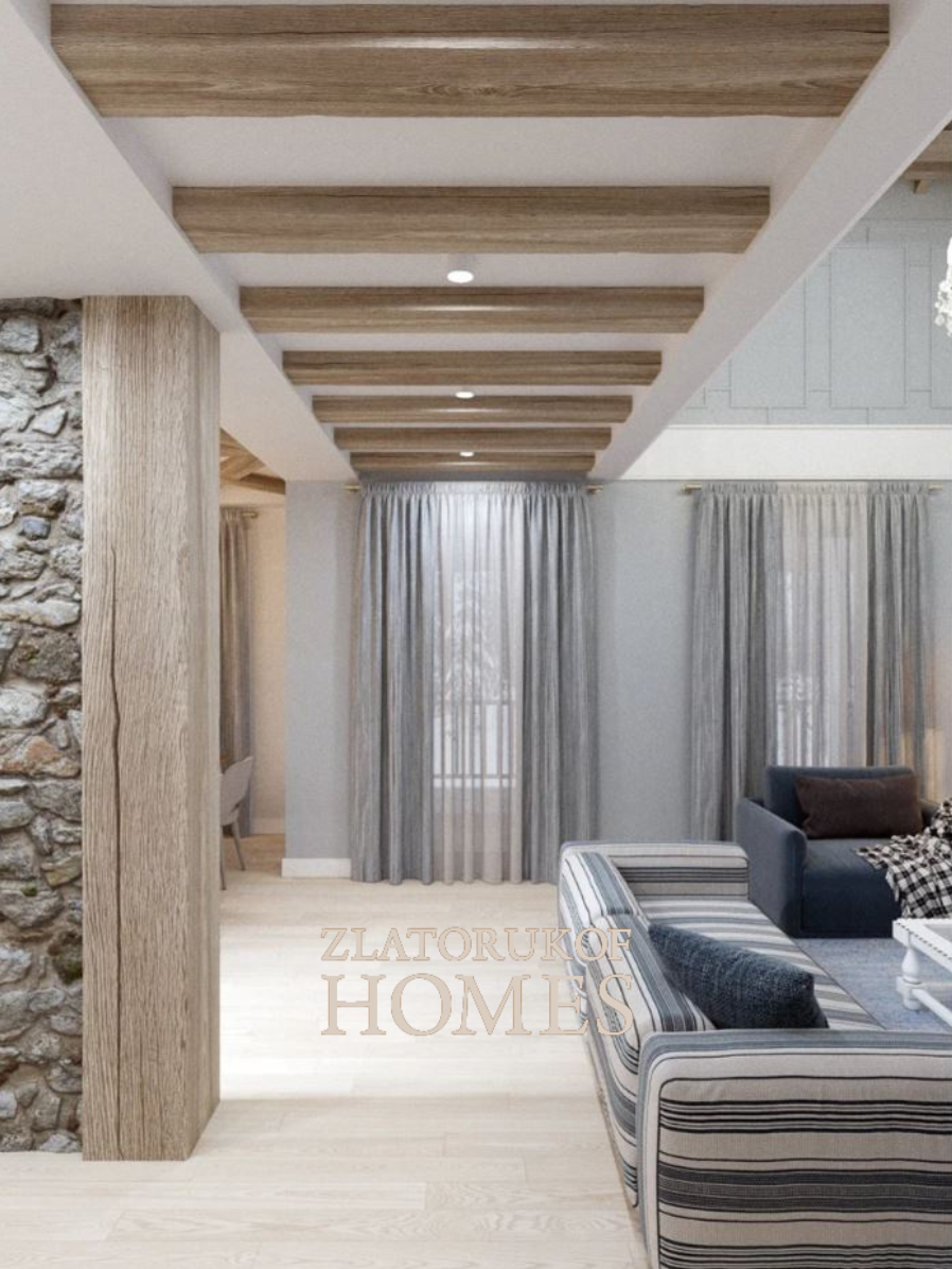 | Внешняя отделка: облицовка фасада имитацией бруса, отделка углов, откосов, наличники окон и дверей, настил террас и балконов, устройство ограждений. Устройство карнизов, подшивка кровельных свесов. Покраска всех элементов Tikkurila в/д фасадная Pika-Teho | ✔ | ✔ | ✔ |