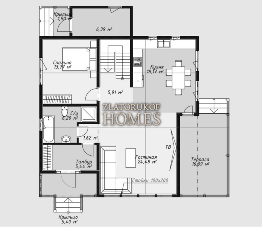 | Кровельное покрытие МЧ PE GrandLine Classic Satin 0,5 мм, устройство обрешетки, контробрешетки " Комплект водосточной системы Doke (Германия) Комплект трубчатых снегозадержателей Grandline Монтаж подкровельной диффузионной мембраны Delta Vent N | ✔ | ✔ | ✔ |